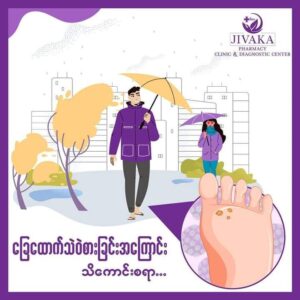 ⛈ အခုလို မိုးရာသီမှာ ခြေထောက်သဲဝဲစားခြင်းဟာ အသက်အရွယ် ကျားမ မရွေး ဖြစ်လေ့ ဖြစ်ထ ရှိတဲ့ ရောဂါ တစ်မျိုးဖြစ်ပါတယ်။ ရေနဲ့ ထိတွေ့ပါများတဲ့ သူတွေ၊ ခြေထောက်ကို အသုံးပြုလှုပ်ရှားရတဲ့ အားကစားသမားတွေထံမှာ အများဆုံး ဖြစ်လေ့ရှိပါတယ်။ ❗️ ဒီမှို ရောဂါ စွဲကပ်ရတဲ့ အဓိက အကြောင်းအရင်းကတော့ ခြေထောက်ကို အမြဲစိုစွတ်နေအောင်ထားခြင်း၊ အချိန်ကြာမြင့်စွာ ခြေစွပ်ဝတ်ခြင်းတွေကြောင့်ပဲ ဖြစ်ပါတယ်။ ဒါဆိုရင် ခြေထောက်သဲဝဲစားခြင်းရဲ့ လက္ခဏာ တွေက ဘာများဖြစ်မလဲ? 🤔❕ ခြေချောင်းကြားတွေနဲ့ခြေဖဝါးမှာ ယားခြင်း၊ တဆစ်ဆစ်စူးခြင်း၊ ပူခြင်း❕ ခြေဖဝါးမှာ ယားနာအရေကြည်အိတ်ထခြင်း❕ ခြေဖဝါးအရေပြားများ ကွာကျခြင်း၊❕ သင့်ခြေဖဝါးအရေပြား ခြေထောက်စောင်းအရေပြားများ ခြောက်သွေ့ခြင်း❕ ခြေသည်းအရောင်ပြောင်းခြင်း၊ ထူခြင်း၊ ကျိုးပဲ့ခြင်း၊ ခြေသည်းခွံကျွတ်ထွက်ခြင်းတွေ ဖြစ်ပေါ်လာနိုင်ပါတယ်။ 👩⚕️ ဒီရောဂါကို…