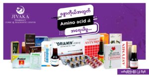 ဒီနေ့မှာတော့ ဇီဝကဆေးဆိုင်ကနေ အားဆေးတွေမှာ ပါဝင်သည့် Amino acidsအကြောင်းကို ပြောပြပေးမှာ ဖြစ်ပါသည်။ ခန္ဓာကိုယ်၏ ၇၅ ရာခိုင်နှုန်းခန့်ကို ပရိုတင်းဟုခေါ်သည့် အသားဓာတ်များဖြင့် တည်ဆောက်ထားပါသည်။ ထိုအသားဓာတ်များ ဖြစ်ပေါ်ဖို့အတွက်Amino acids များက အခြေခံအုတ်မြစ်များအဖြစ် လိုအပ်ပါသည်။ Amino acids များတွင် ခန္ဓာကိုယ်က အလိုအလျောက်ထုတ်နိုင်သည့် Amino acids များရှိသလို မထုတ်နိုင်သည့် Amino acids များလည်း ရှိပါသည်။ ခန္ဓာကိုယ်၏ ပုံမှန်လုပ်ငန်းဆောင်တာများ လုပ်ဆောင်နိုင်ဖို့အတွက် ခန္ဓာကိုယ်က မထုတ်နိုင်သည့် Amino acids များကို အစားအစာများမှသော်လည်းကောင်း၊ ဖြည့်စွက်စာများမှသော်လည်းကောင်း ပြင်ပကနေ ရရှိဖို့အတွက် လိုအပ်ပါသည်။ Amino acids ကြွယ်ဝသည့် အစားအစာများကတော့ နို့ထွက်ပစ္စည်းများ၊ အမဲသား၊ ဝက်သား၊ ကြက်သား၊ ဆော်လမွန်ငါး၊…